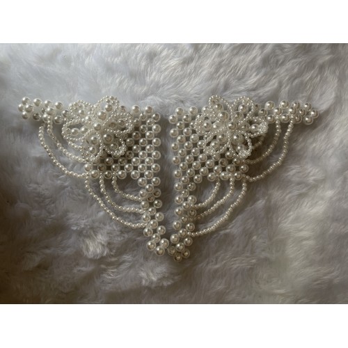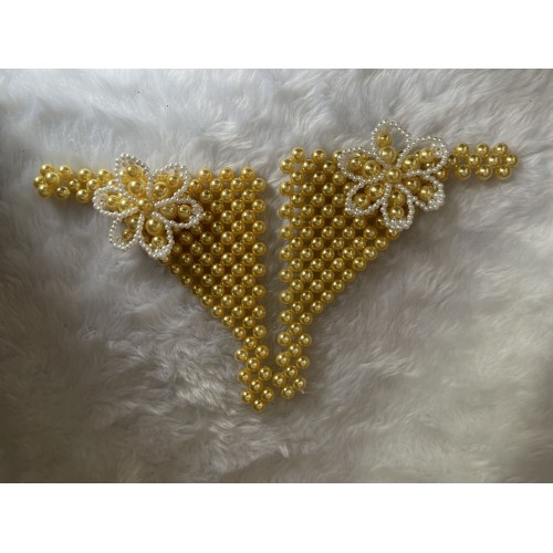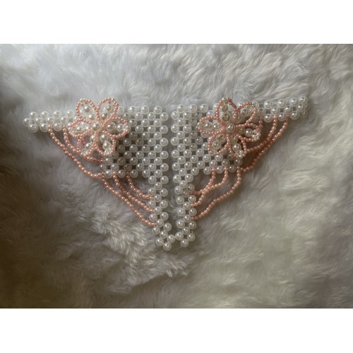 Deixe seus chinelos ainda mais encantadores com a Trama em V com Flor, feita com pérolas cuidadosamente entrelaçadas e um design delicado que valoriza os pés.