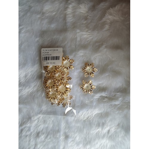 Feitas em material resistente e com acabamento dourado, essas flores são ideais para quem deseja personalizar chinelos, tiaras, bolsas ou outros trabalhos artesanais com muito charme e elegância.